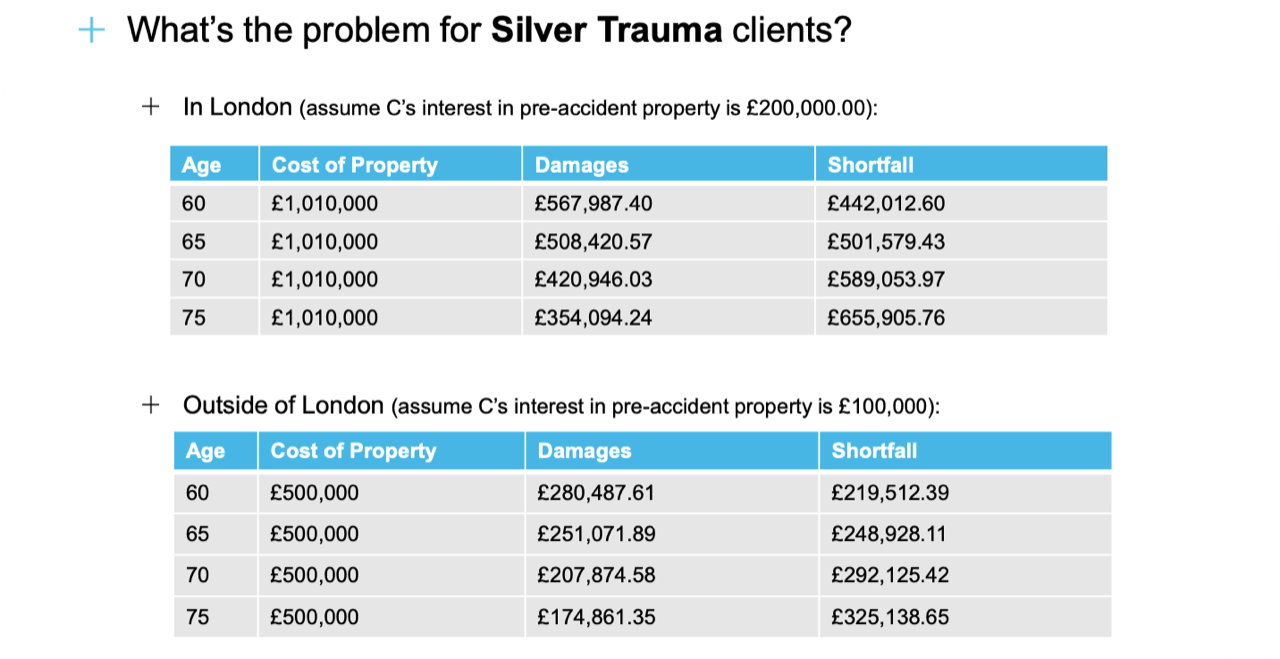 In their care needs, for a young person their situation can change considerably over the years ahead - but for a silver trauma client, the costs can probably be better estimated; although given the reduction if life expectancy when compared to a younger person, there is less time to maximise the potential of the settlement through investment.