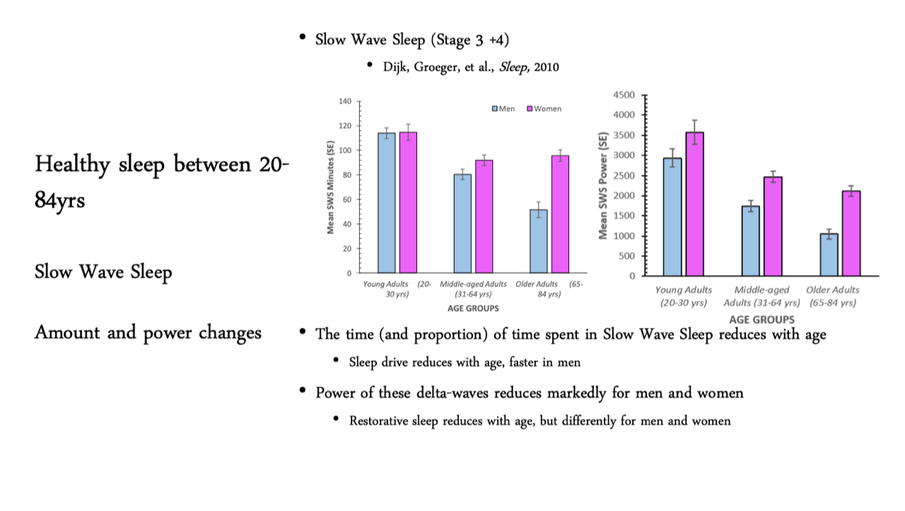 Prof Groeger highlights the importance of slow wave sleep, where synchrony is achieved across parts of the brain - although slow wave sleep too reduces with age, and sadly can reduce further following major trauma.